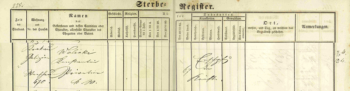 „73. Roku Tysiąc Osiemset Czternastego, Dnia dwudziestego pierwszego miesiąca Lipca w Warszawie. Przed Nami Urzędnikiem Stanu Cywilnego Gminy Szostey, Miasta Stołecznego Warszawy, w Powiecie i Departamencie Warszawskim, Stawił się Wielmożny Konstanty, Leon, dwoch Imion, Waldorf , z Komorza Wolicki, – Kawaler, Obywatel Xięstwa Warszawskiego, Zamieszkały w Koszykach, przy Warszawie, w Pałacu pod Liczbą Tysiąc Siedemset, pięcdziesiąt trzy; przy Ulicy Koszyki, Cyrkule Szostym, ktory Składa metrykę wyiętą z Xiąg Koscioła Parafialnego, Lanckoronskiego, w Powiecie i Departamencie Krakowskim Sytupwanego, na dwudziestym dziewiątym, miesiąca Marca, Roku Tysiąc Osiemset, trzynastego, z podpisem Wiel. Xiędza Jana Nepomucena Janikowskiego, Proboszcza Koscioła Lanckoronskiego, i Izdebnickiego, okazuiącą, iż Skonczył, Rok dwudziesty, trzeci wieku Swego, Syn Jasnie wielmoznego Jana Nepomucena Waldorf, z Komorza, Wolickiego, Sendziego Appellacyinego, Xięstwa Warszawskiego, Zamieszkałego, w Warszawie, w domu pod Liczbą Szescset, przy Ulicy Bielanskiey, Cyrkule Czwartym, i Salomei z Kruszynskich małżonkow małżonków, Zamieszkałych, w Miescie Radomiu, Powiecie i Departamencie Radomskim, obojga zyiących; w Assystencyi Oyca czyniący, ktoremu Akt uszanowania, w przytomnosci Naszej Został dopełnionym; Tudziez Wielmozna Augustyna de Kermasson Panna, która także, składa Akt Znania, przez Sąd Podsędkowski, Pokoiu Wydziału Czwartego, Powiatu, i Miasta Stołecznego Warszawy; na dniu dwunastym miesiąca Czerwca Roku Tysiąc Osmset czternastego, Spissany, przez Wielmożnego Czenymiskiego, Pisarza Aktowego, przy Trybunale, Cywilnem, pierwszey Instancyi, Departamentu Warszawskiego, Zastępce, Wielmożnego, Prokura Krolewskiego, przy Trybunale tymże, na dniu Czternastem, miesiąca Czerwca, Roku Tysiąc Osmset czternastego, wniesionego do potwierdzenia, a przez Sąd Pokoiu Wydziału, Czwartego, Powiatu i Miasta Stołecznego Warszawy, na dniu, Czternasym, miesiąca Czerwca, Roku Tysiąc Osiemset , czternastego, potwierdzonego, wyrazaiacy, iż lat dziewiętnascie, wieku swego, Corka Jasnie Wielmoznego, Jana Franciszka de Kermasson, byłego Officyera, Gwardyi, Nayiasnieyszego Ludwika, IVI, Króla Francuzkiego, Zamieszkałego, w Paryzu w, Francyi, tamże Zmarłego, i Łucyi, z Waltebregow, piewszego Slubu de Kermasson, powtornego zas Jasnie Wielmoznego Hrabi Tadeusza Morskiego, Małżonki, Zamieszkałych, w Koszykach, przy Warszawie, w Pałacu pod liczbą, Tysiąc Siedemset pięcdziesiąt, przy Ulicy Koszyki, Cyrkule Szostym, bawiąca w domu Rodzicow, w Assystencyi, Matki, i Oyczyma czyniącego, ktorym, Akt uszanowania, w przytomnosci Naszej Został, dopełnionym; Żądaniem iest Stron Stawaiących, ażebyśmy, przystąpili do obchodu Małżenstwa, między niemi, umowionego, którego Zapowiedź pierwsza, przed drzwiami domu Naszego Gminnego, wyszła, na dniu Siedemnastym, miesiąca Lipca, Roku Tysiąc Osiemset, czternastego, ogodzinie iedynastey, przed południem, druga Zas nie nastąpiła, na mocy uwolnienia, wydanego, w Imieniu Rządu, przez Jasnie Wielmoznego, Ostrowskiego, Prezesa, Trybunału, Cywilnego, pierwszey Instancyi, Departu Warszawskiego, na dniu, dwudziestym, miesiąca Lipca Roku Tysiąc Osiemset, czternastego, w Warszawie, ktore to uwolnienie, Nam okazane, Złozone Zostało w Aktach Korresponduiących, z Aktami, Stanu Cuwilnego, Gdy o Zadnym tamowaniu, rzeczonego Małżenstwa uwiadomieni nie zostalismy, a Rodzice, ninieyszym, na obchod Małżenstwa, zezwalaią, przychylaiąc się zatym, do ządania Stron, po przeczytaniu, wszystkich wyżey, wspomnionych papierów, i działu Szostego, w tytule Kodexu Napoleona, o Małżenstwie, Zapytalismy się, przyszłego Małżonka, i przyszłey Małzonki, czyli chcą połączyc się z sobą, związkiem Małżenskim, Na co, gdy każde znich, oddzielnie, odpowiedziało, iż taka ich iest wola, Ogłaszamy, w Imieniu Prawa, iż Wielmozny Konstantyn Leon, dwóch Imion Waldorf z Komorza Wolicki Kawaler, i Wielmozna Augustyna, de Kermasson, Panna, są połączeni, z sobą, węzłem Małżenstwa, Czego, spisalismy, Akt, w przytomnosci Jasnie Wielmożnych, Jana Kantego, Hrabiego de Riviera, Załuskiego, Sędziego Appellacyinego, Xięstwa Warszawskiego, lat czterdziesci, osiem liczącego, zamieszkałego w Warszawie, w domu pod liczbą, Tysiąc Siedemset Siedemdziesiąt ieden, przy Ulicy Swięto Irskiey, Cyrkule trzecim, Ernesta, Sartorynsta, de Schwamenfled, Dyrektora Generalnego, Poczt Xięstwa Warszawskiego, lat Siedemdziesiąt, cztery liczącego, Zamieszkałego, w domu pod liczbą, Czterysta, Osiemdziesiąt trzy, przy Ulicy, Napoleona, Cyrkule Czwartym, Piotra Orzechowskiego Sędziego Appellacyinego, Xięstwa Warszawskiego; lat Szescdziesiąt liczącego, Zamieszkałego, w domu pod liczbą, czterysta, Siedemdziesiąt, przy Ulicy Nowo Senatorskiey, Cyrkule Siodmem, i Michała, de Bergonzoni, Doktora Medecyny, lat Sześćdziesiąt, Sześć liczącego, Zamieszkałego, w domu pod liczbą, Tysiąc trzysta, dziewiętnascie, przy Ulicy, Nowy Swiat, Cyrkule sostym: ktory to Akt, Stawaiacym przeczytany; i podpisany został, przez Nas Urzędnika, Stanu Cywilnego, Gminy Szostey, Miasta Stołecznego, Warszawy, Strone i Swiadków.